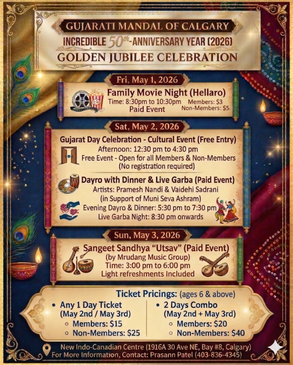 Our incredible 50th-Anniversary Year (2026) Golden Jubilee Celebration is finally here! We have planned an unforgettable three-day weekend filled with culture, music, movie, food and devotion to celebrate this historic milestone together.