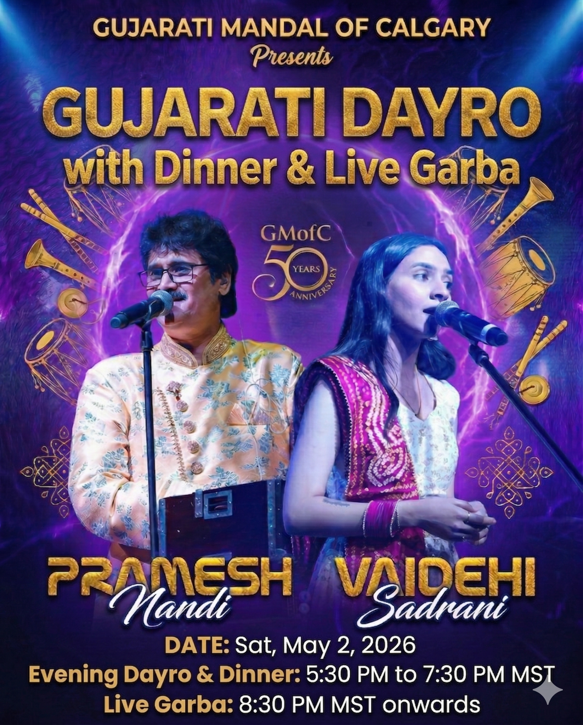 Garba Night (8:30 PM onwards): Keep the energy going and dance the night away with live Garba singing by same renowned artists: Pramesh Nandi and Vaidehi Sadrani !!